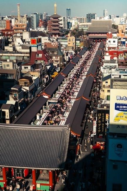 Explore the surrounding streets, discovering traditional craft shops and local eateries. Your PDF map will pinpoint hidden temples and shrines, offering a deeper cultural experience. Asakusa provides a stark contrast to Tokyo’s modern districts, offering a serene and authentic atmosphere. Utilizing a map ensures you don’t miss any of the area’s cultural treasures, making your visit truly memorable and enriching.